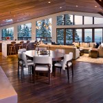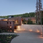 The home is for a family of 6 (plus four to eight guest each visit) so the house is designed to be climbed on, through and around. A series of “living platforms,” both inside and outside, allow small groups of people to collect for different activities while all being a part of the overall space. Fold back door systems throughout the house blur the distinction between inside and outside. A central atrium with 15’-18’ trees bring the surrounding forest right through the house. Three curving stone walls bring you through the house…one by car, one by foot and one by ski. Classic mountain architectural materials are used, but re-interpreted in a completely new, contemporary way.
