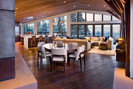 The downslope elevations are predominantly glass, with views over the treetops for hundreds of miles.