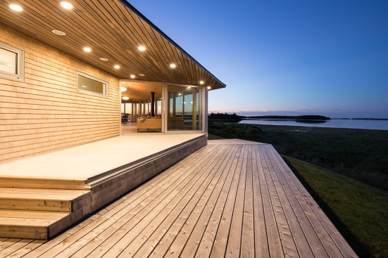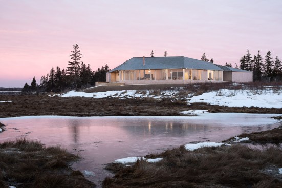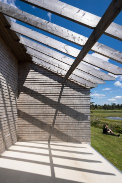 The coastline is scattered with very few small, traditional cottages and homes, far from overdeveloped with new buildings. From the initial site visit it was clear that any proposed building would need to be respectful. The form of the building would be low, long and horizontal and the material palette would be composed of natural, local materials which would blend into the landscape. Formally, the building is inspired by the infamous Acadian salt water hay stacks, “une barge”, which dot the local landscape. Historically, the hay stacks allowed for storing hay on the open marshes on structures which kept it elevated and protected from the water when the marshes flooded.