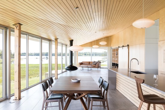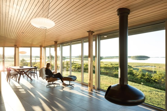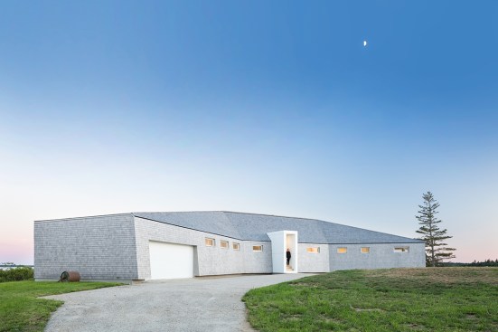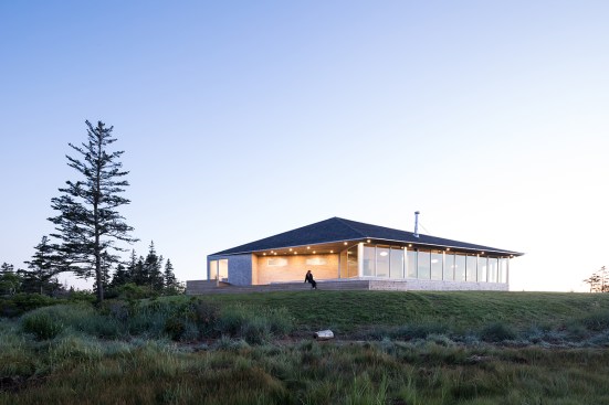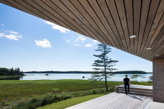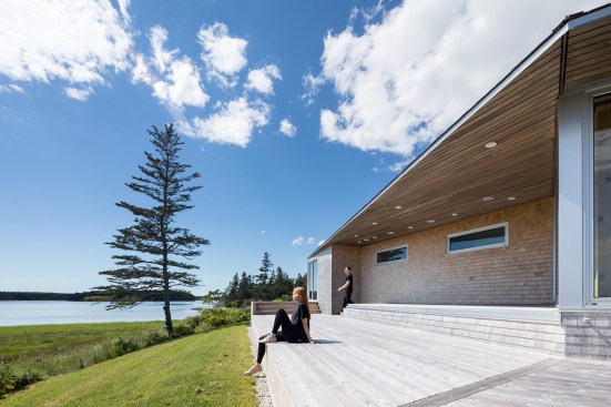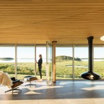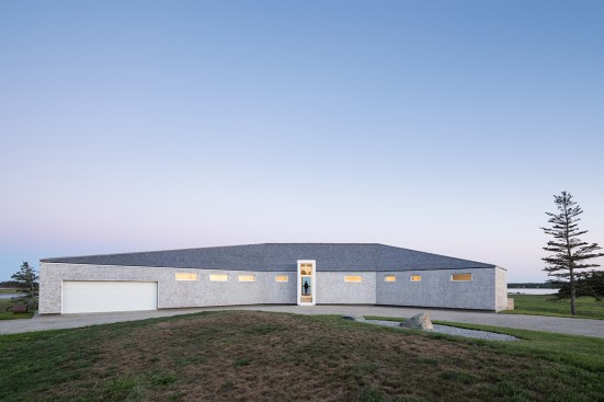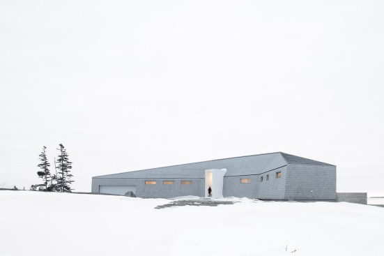The materiality, form, and siting are all intrinsically connected to the local condition. The economical shed roof is inspired by local fishing sheds and shanties spread along the Nova Scotia coastline – gently morphed. The roof framing spans the exterior walls, making for the most economical and efficient roof form possible. Both wall and roof are clad in the same eastern white cedar, locally sourced, creating a full wood shingle shell.