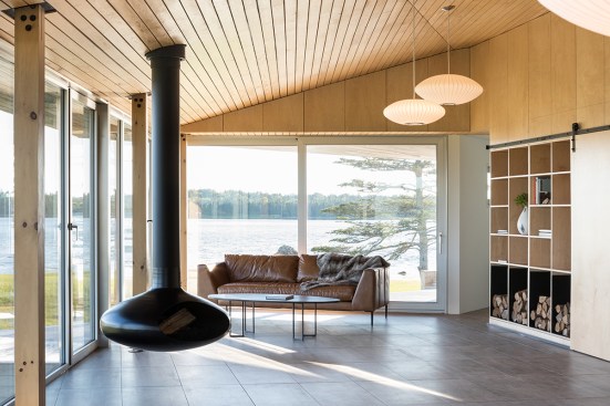 The clients are Swiss seasonal occupants, using the dwelling as an outlet for recreational activities such as swimming, fishing, boating, hiking and more. As such, it was crucial that the space be designed to be durable, rugged and easily maintained. This was achieved by using a consistent palette of natural and raw materials such as concrete and local wood cladding.