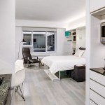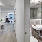 Lilian H Weinreich Architects’ renovation of this 430 sf studio apartment, situated in the prestigious Hampshire House on New York City’s Central Park South, creates serenity and eliminates excess with modern, essential, and compact design. Light is treated as a material substance; the illumination of varying ceiling planes clearly delineates the apartment’s zones: entry, kitchen, bathroom, and living.