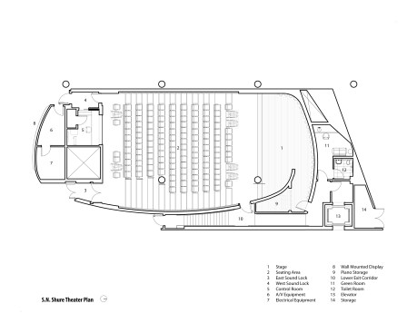 This 142-seat theater was commissioned to commemorate S.N. Shure’s outstanding contributions of technical significance in amplified sound. The design employs state-of-the-art acoustical and audio technologies that reflect Shure’s historic commitment to continuous innovation. It conveys Shure quality through warmth of materials and comfort, and opulence through its acoustic quality and seamlessly integrated technology. One is unaware of the engineering at play, building on the strengths of the company and extending their legacy to the future.
