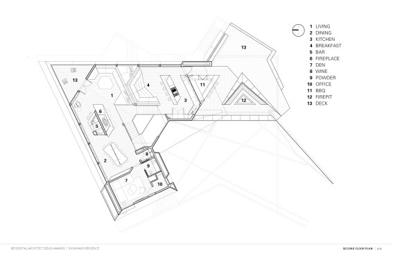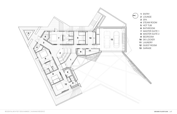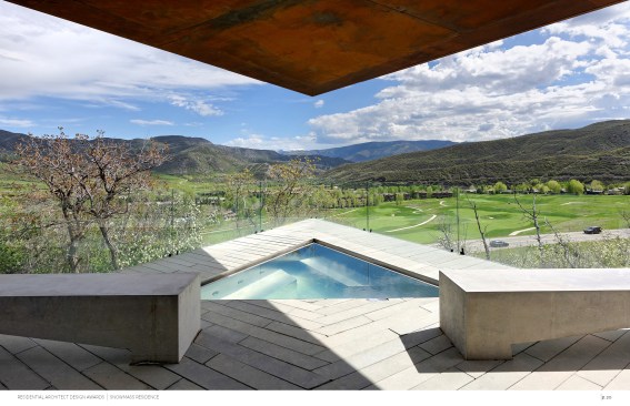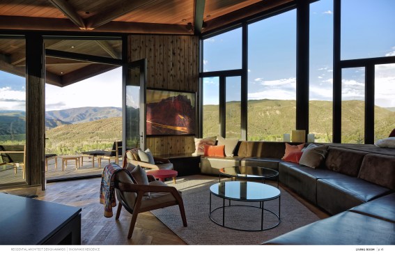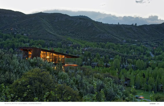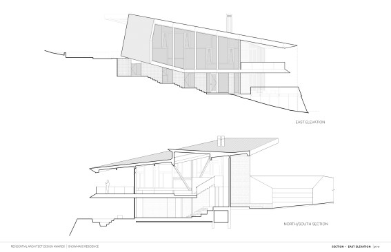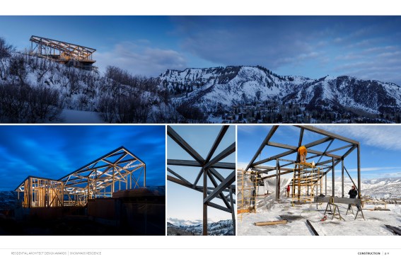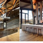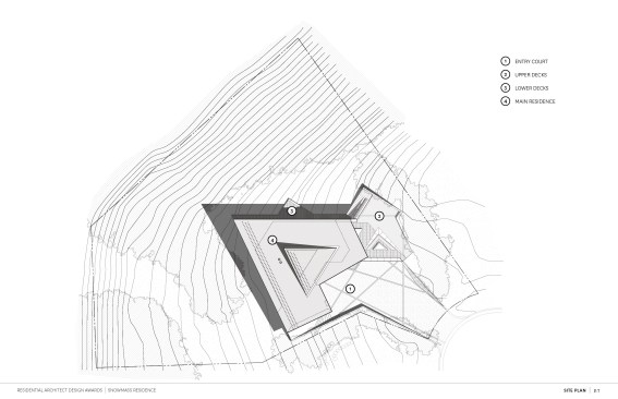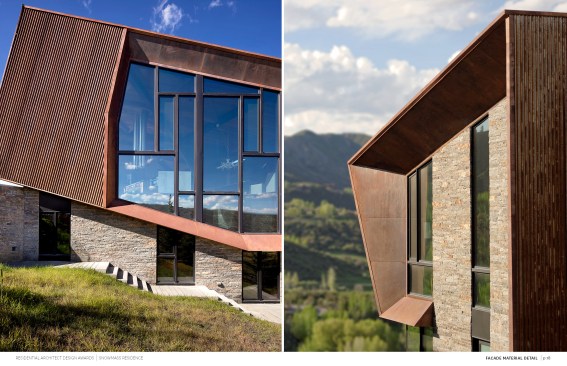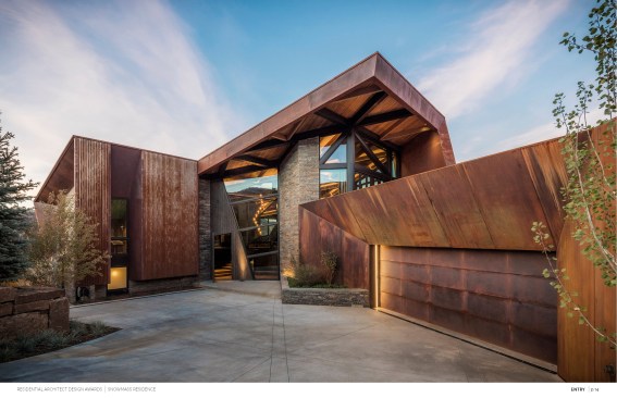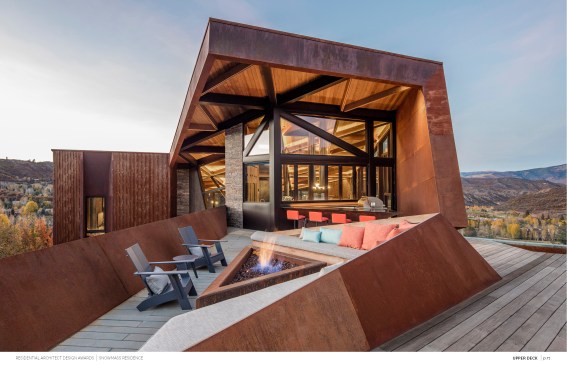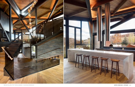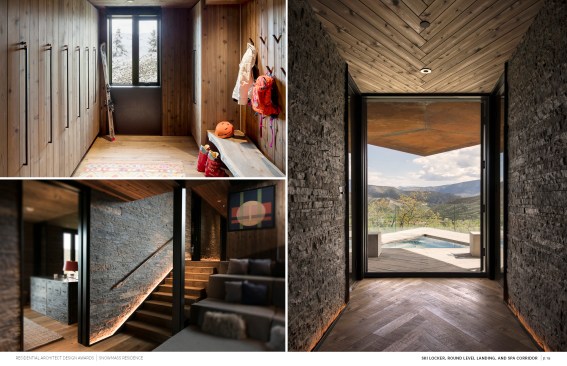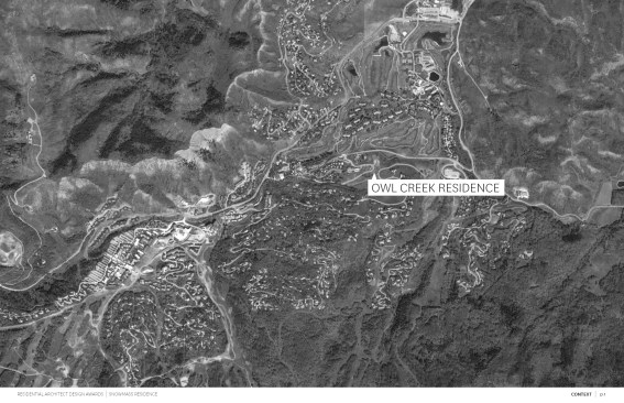 The mountain retreat is about enhancing connection, not disconnecting. This vacation home was designed around the idea that a place can deepen the connections between two families, and between those families and the landscape they love. This residence serves as a vacation retreat for a brother and sister and their respective families. Using the strict constraints of the site as an advantage, the home frames powerful views on two principal façades, maximizing the visual connection to the landscape at every angle. Strategic decisions in frame and form allowed for efficiencies and functional benefits, including a triangular steep frame with car decking to minimize costs through prefabrication, and a roof slope to move water and snow away from the building. Finishes and interior relationships were carefully crafted in an effort to bring the scenic landscape inward, making it an extension of the living experience. A split level design allows for the living room, fireplace, bar and lounge to feel like intimate spaces with a communal energy. Compact and efficient suites open up to expansive outdoor views. An open terraced theater maximizes space surrounding the stairwell. Exterior spaces open interior activity up into the outdoors- this includes a triangular spa with panoramic views, an elevated deck and an expansive outdoor terrace right off of the kitchen. The Owl Creek residence provides a platform on which two families can interact with one another and their surroundings with purpose, deepening connections and enriching life.