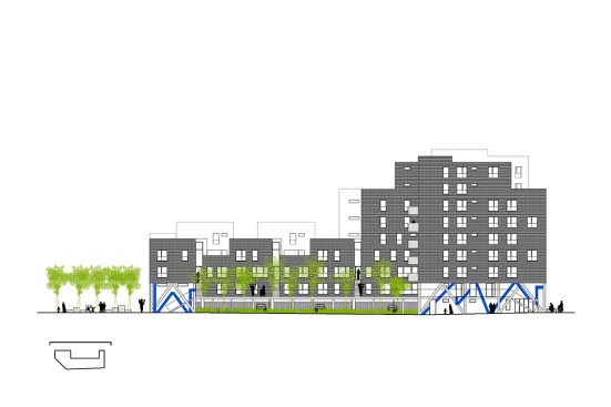 In Paris suburb, located in a flood risk area, this project of 61 social housing units contributes to the objective of the Ivry Confluences Urban Development Zone (ZAC) to revitalize the southern part of this former industrial district.