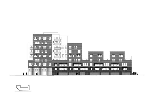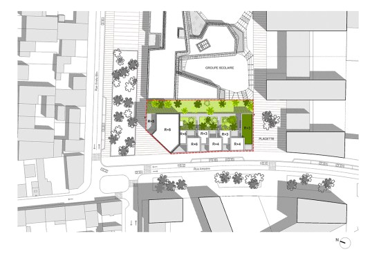 To ensure a transition between the scales of the very different urban situations, the project forms a homogeneous built environment made up of a series of buildings ranging from two to seven storeys in height. This staggered height plan goes hand-in-hand with a consideration of the range of uses and typologies, urban forms and modes of living that form a city.