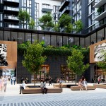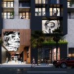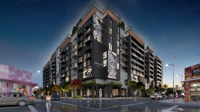 Over the past several years, Wynwood has transformed from an industrial neighborhood with concrete box warehouses into a creative paradise where boxes turned into artist studios and galleries, both inside and outside with street art. Now it is a mixture of warehouses that have been repurposed as retail space, offices and restaurants, whimsical art installations and residential living. With Society Wynwood, we wanted to pay homage to the physical and metaphorical layers of the neighborhood. For instance, portions of the project push back and expose raw concrete and greenery, visually referencing 100 years of developed layers. Additionally, the horizontal recesses create a tripartite division, revealing the three main programmatic uses of the project.