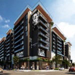 Through cantilevering the roof slab over a recessed interstitial space and lighting the underside, we have created a feeling of flotation and expansiveness, highlighting the prominence of the amenity space. The mezzanine level provides a sharp division between the residential units and the ground level retail below. We treated this area with vegetative art installations and a glow of light to match Wynwood’s personality. The team maximized the units along the perimeter and double-loaded a portion of them to face a vast internal courtyard that would allow natural light to penetrate the interior spaces. We also incorporated framed “shadow box art” where we flipped window lines around the corners of the building, slightly recessing and lighting strategically placed art canvases. The layers of recesses and projections, vegetative and painted art and lighting takes an expansive project and scales it down in respect of the neighborhood while engaging the community on a pedestrian and an urban scale.