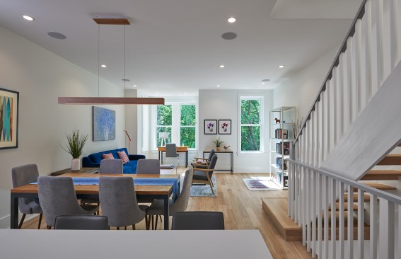 Located in the leafy and picturesque Washington, DC neighborhood of Dupont Circle, the Sola Condominium represents a new chapter for a grand Victorian rowhouse with beautiful bones, but one that had been neglected for many years. Located in a well-established Historic District and zoned for apartment use, the task of successfully integrating three new apartments into a fixed footprint, only two exterior walls, and historic skin was a challenge. Structural problems and extensive water damage required an complete removal of the interior finishes and large portions of the underlying structure. The owner and architect took this as an opportunity to construct an unapologetically modern interior project that remained sensitive to the surrounding historic context.
