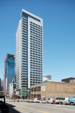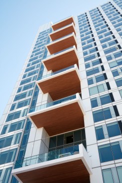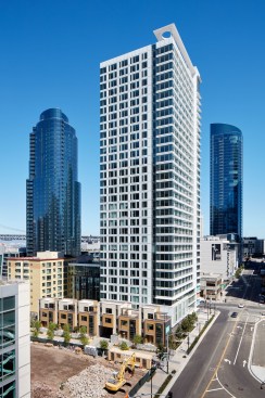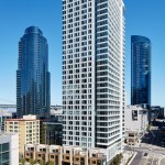 The design of Solaire, a 32-story, 409-unit market-rate apartment tower, embodies an approach to urbanism that embraces both social inclusion and sustainability. Solaire successfully creates a diverse neighborhood that promotes interaction among its residents and the city at large. Located in San Francisco’s South of Market – SoMa District, the tower is part of the two-block Transbay Block 6 & 7 residential development composed of both market rate and affordable housing. Outside of common lobbies, corridors, elevators, and amenities spaces, modern high-rise buildings often have limited opportunities for social interaction, which in turn isolates residents. Solaire creates a true vertical community by providing access to eight large, public balconies on every third floor in lieu of private balconies. These “sky parks” offer open views of the skyline and the city below. The balconies provide space for residents to meet informally, similar to chance meetings on a front porch or in a pocket park. Solaire establishes a new benchmark for sustainable building strategies by leveraging San Francisco’s mild winters and dry summers. The city’s low-humidity climate allows for a completely naturally ventilated building to meet its cooling needs without the use of conventional mechanical systems. Each living unit contains operable windows and an occupant-controlled, fan-forced outside air ventilation system. Due to Solaire’s proximity to the Bay Bridge approach, the City of San Francisco required a fine particulate air filtration system for occupant health. The design team combined this filtration system with direct outside air intake to take advantage of the city’s naturally cool climate. Computerized thermal comfort modeling verified the effectiveness of this approach and enabled the design team to confidently avoid the need for mechanical cooling systems. In order for the system to be effective as a cooling system, the design kept solar and internal heat gains to a minimum by utilizing a high-performance enclosure system that combines high-performance glass with integrated shading devices and an efficient interior and lighting package. The project is designed to be LEED Gold.