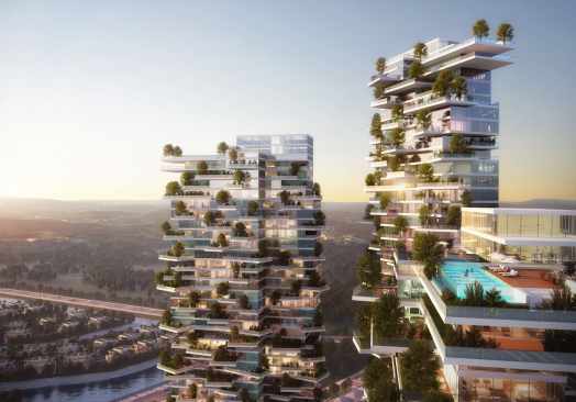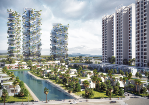 Beyond delivering a striking design, the vertical gardens that engulf the 42- and 35 -story buildings deliver a bold and effective solution that elevates the project’s sustainability. The more than one million trees planted for the development provide insulation in the cooler months and shade in the warmer months, while also reducing residents’ reliance on energy-draining heating and cooling systems. To ensure the vertical gardens will thrive, Dewan installed cutting-edge watering systems specifically designed for each balcony depending on the type of plants and the orientation of the space. And to further reduce the project’s ecological impact, Dewan conducted comprehensive, site-specific environmental studies to physically position the development so that it would optimize natural sunlight and wind patterns for further temperature regulation.
