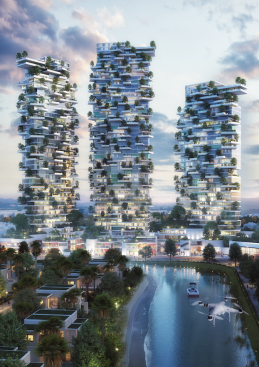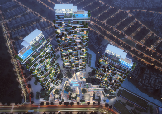 By seamlessly integrating gorgeous architecture, cutting-edge sustainable technology, and the surrounding natural environment, Dewan’s Solforest Ecopark is emerging as one of the most innovative community developments in the world. The centerpiece of the 1,194-unit, 129,000-square-meter master planned project is the vertical garden that surrounds the two residential main towers which visually unifies the high-rise development with the lush landscape of Vietnam’s greater Hanoi area.