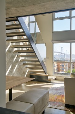 Offering spectacular Bay Bridge views, this two-level loft was an uninspired white box chopped up into many small rooms. Having worked with the owners on another home in the Carmel Valley, the designers wanted to bring a similar warm, modern and spacious character to this loft that celebrates the view while offering two-bedroom suites for overnight guests.