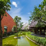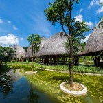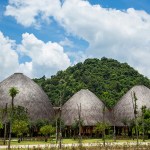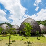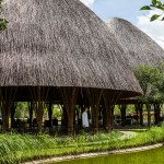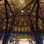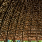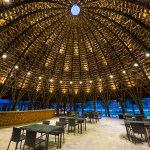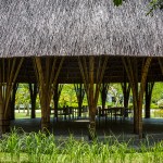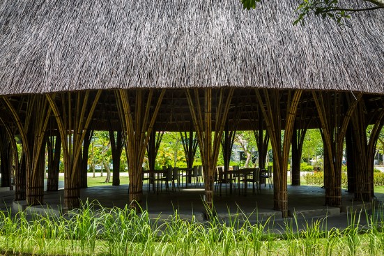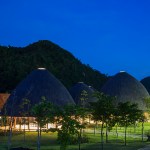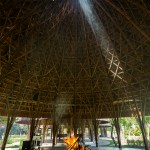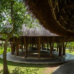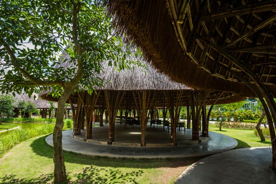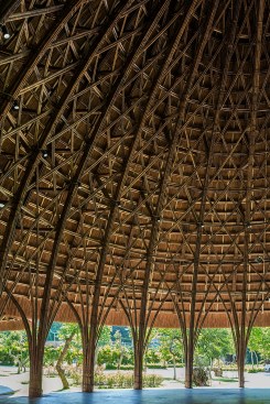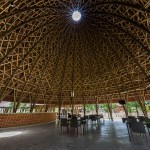 The pure bamboo structure is inspired by a traditional bamboo basket. The domes have double layered structure with a roof made of thatch. A skylight on the top of each dome allows natural lighting and natural ventilation.
