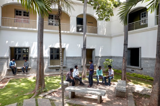 The Sona College of Technology at Salem, Tamil Nadu continues to be one of our notable educational projects. With the first phase completed in 2014, its 3,382-sq.m academic and residential blocks focus on promoting interaction between built forms, between students, and between the indoors and the outdoors. The design incorporates strategically planned courtyards that manifest as green plazas landscaped with multilevel outdoor seating. Residual spaces, stepped walkways, and pathways connecting buildings are further used as interactive landscaped platforms for student activity. Apart from vibrant social spaces, the campus also offers spaces for privacy and contemplation. Niches in corridors serve as informal seating while recessed areas between the classroom and corridors and landings of staircases serve as quiet, intimate spaces. The open-air theatre, nestled between built forms acts as the cultural centre of the campus.