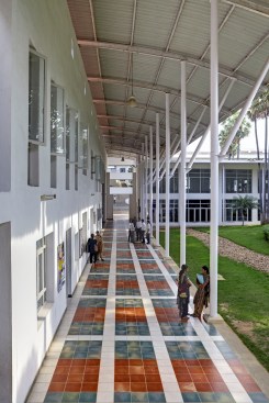 The Sona College of Technology is conscious of its context and climate, and responds to the environmental concerns besides a tectonic structuring of spaces and elements. With its sustainable site planning, passive design strategies, use of low-energy materials and renewable energy of 10kW solar panels installed on site, the college has a GRIHA provisional rating of 5 stars – with a 55.79 % reduction in energy consumption compared to the GRIHA benchmark.