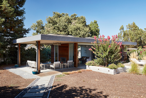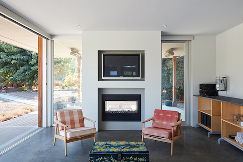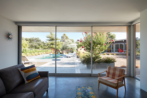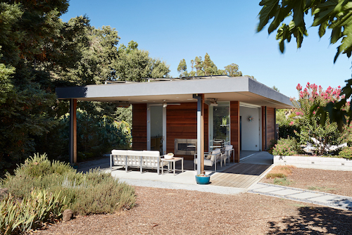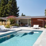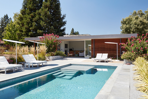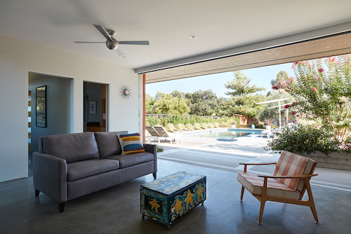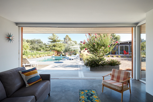 The semi-retired homeowners asked that the structure serve multiple purposes, primarily a place to relax and enjoy the pool while also accommodating overnight guests comfortably. The now empty-nesters wanted a place their kids’ families could enjoy on return visits home. They were looking for an open, modern and warm design that respected the minimalism of their mid-century modern style home, one that was flexible enough to enjoy everyday and allow guests their own privacy.