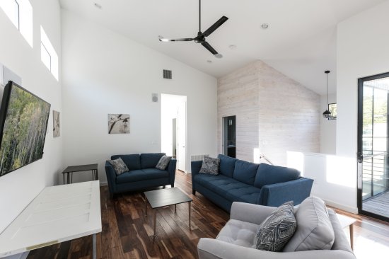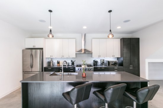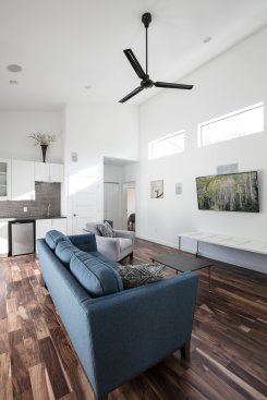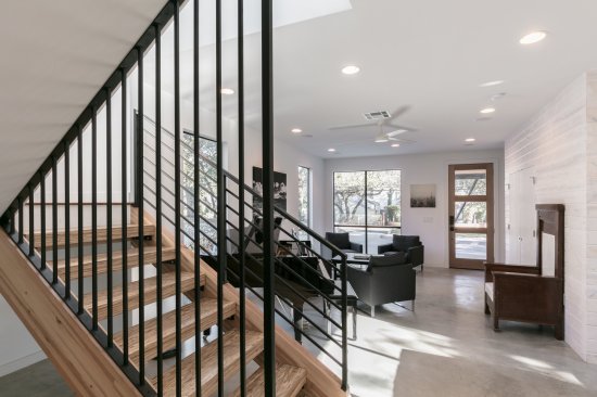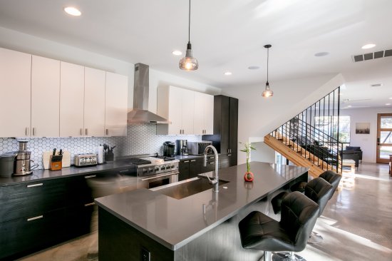 Designed for entertaining around a large pool, this Bouldin neighborhood home features a second-floor wet bar and balconies overlooking the corner of South Fifth Street.