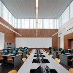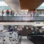 The layering of function and space works: Children lining up for story time don’t bat an eye at students hunkered down in group study rooms. And while the combination of library functions may be unique, at its core, the building “is about providing the spaces for people to interact,” Richärd says, “both with each other and with information.”