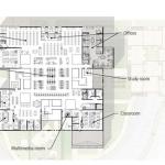 Inside, the program had to be carefully distributed to serve both the students and the area residents. Public-library functions—including a children’s area, teen area, and multipurpose room—are confined to the first floor. The community-college functions—100 computer terminals, periodicals, and research stacks, along with multimedia classrooms and a digital-production studio—are upstairs. The goal was not to duplicate functions, but to create an integration between the academic and public library spaces—“a permeability to the floors,” Richärd says.