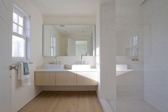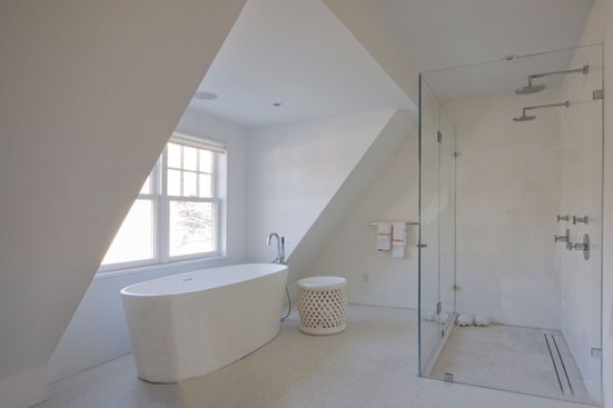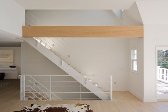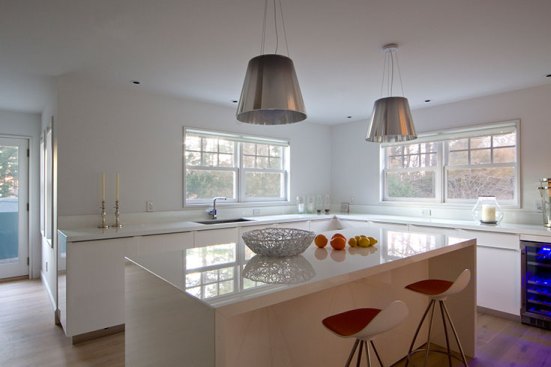 We were invited by our client to design a contemporary space within an existing three story traditional structure. By respecting the lines and planes of the traditionally designed roof structure and volumes of the house, we created open common spaces in communication with each other. This guaranteed an essential and refreshing cross ventilation and at the same time a very clean and luminous feeling for the house.