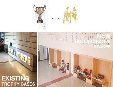 Perhaps no place in America is more redolent of a certain kind of nostalgia than the narrow school hallway, its walls decked with varsity pennants and tacked-up leaflets, that runs the 50-odd feet between the attendance office and the water fountains. For Southeast Raleigh Magnet High School in North Carolina, this often overlooked bit of educational infrastructure has finally gotten its due, courtesy of hometown firm Katherine Hogan Architects and its transformation of the institution’s once-drab entryway into a sparkling Great Hall.