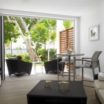Both 14-story towers have a new façade with glass rails and intricate, white aluminum panels throughout and share a new resort-style infinity pool with Jacuzzi, cabanas, and a lap pool surrounded by palm trees and lush landscaping.