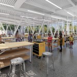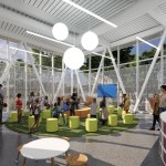 An exterior perforated solar screen has been layered over the glazed exterior to support building energy performance, security and interior user comfort. The screen patterning will be selected through a community artist initiative to reflect the diverse cultural heritage of the neighborhood.
