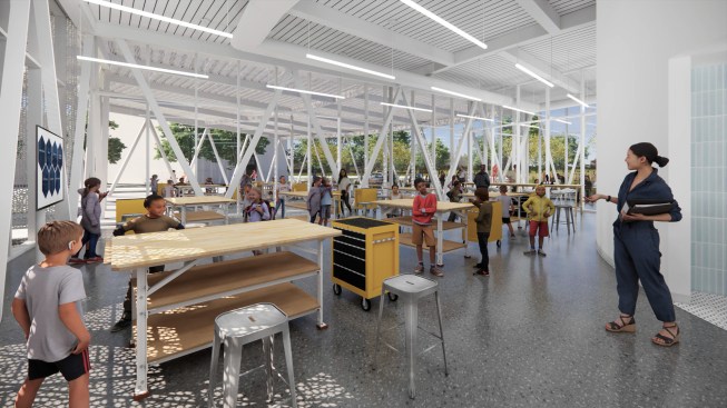 The community room, a flexible space bridging indoors and outdoors, is a place for gatherings and collaboration. With retractable doors opening to an exterior patio, it blurs the boundaries between inside and out, inviting endless possibilities for community engagement.