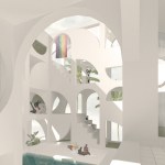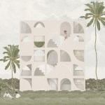 Seemingly a simple cube from the exterior, the aggregated modules become distorted and intertwined as visitors move through the space. Occupants can see and be seen from the courtyard pool, party and intermingle on the upper levels, or take a hot steam or shower in the lower-level grottos. Splash Palace invites them to come in, come out, take a dip, and explore!
