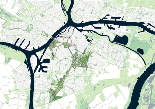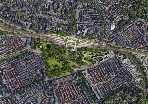 The rail infrastructure does not seem to be the most obvious place for the development assignment of approximately 6,000 homes and facilities. It currently constitutes a barrier in the city with noise and safety challenges arising from freight transport. The vision transforms the railway into a pleasant destination and connects existing neighbourhoods to new city districts with spectacular green areas.