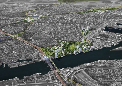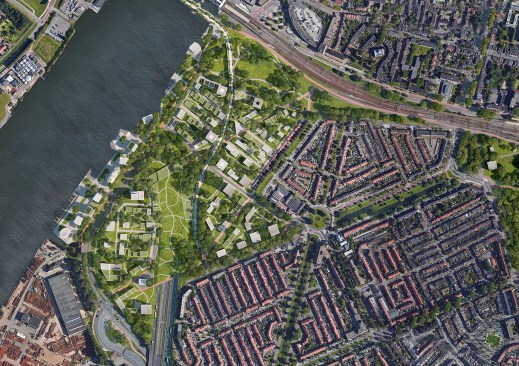 The area around the railway is easily accessible and is within close vicinity to amenities, the historic city centre, the river and the countryside. The vision builds on the beauty of the oldest city in Holland, the nature of the Dutch Delta, but also raw elements such as infrastructure, railways and industry. Places that are loved and places that are disliked will form an attractively coherent whole in 2040.In the vision, the Stadsbrug transforms from a motorway into a high-level green city park. Here you can walk and cycle between the new residential buildings along the river front with a view of the Oude Maas river and the city. The green estate of Weizigtpark connects across the railway, enabling access into the city centre through the greenery. Dordrecht Central Station will be the greenest station in the Netherlands and on the Oude Maas river people will live ‘with their feet on the water’ in a car-free neighbourhood.