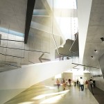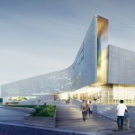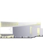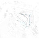 The building volume is divided into two big functional blocks: Multipurpose gymnasium with the stage and the spectators’ places and the Daily sports. Being connected angle-wise to each other these two volumes form the street public space in front of the building entrance. This provides for the amphitheatre arrangement and the existing trees protection. The part of the multifunctional sports hall volume forms a console. The natural relief drop is used here and that provides for the hovel over the part of the parking lot. Two independent car entrances to the territory are arranged in this project as well as two separate parking lots for the visitors: one is under the console and the other for the personnel is near the staff entrance and the administrative block. There is also a possibility for the freight transport entrance from the administrative block side that provides for sports and concert equipment delivery. The total number of parking places is 66 including 8 places meant for the disable persons.