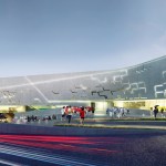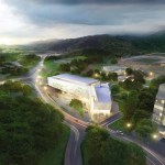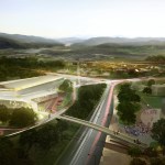 The axis parallel to the existing sports complex axis has been chosen as a basic direction. This axis also went through the top of the hill situated near the constriction area. The following directions have been chosen as the additional ones: the South-North direction, the axis of the existing memorial and the intersection of Hyeonpungdong-ro and Hyeonpungjungang-ro Streets. The pedestrian connection of the complex with the existing sports center (Dalseong Sports Complex Park) is arranged along the main axis upon the bridge.