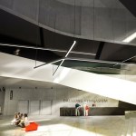 The bearing construction is made out of site concrete and metal, exterior finishing is made out of glazed concrete plates. Channel glass is applied for facades glazing fragments and the lantern lights. The following décor is used in the main spaces interiors: concrete surfaces of the bearing constructions, smooth-finish and painterly plaster, ceramic or plastic panels.