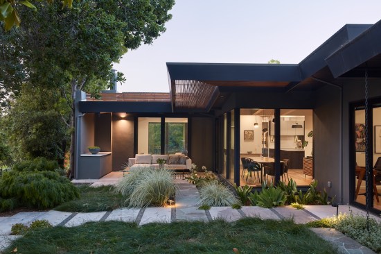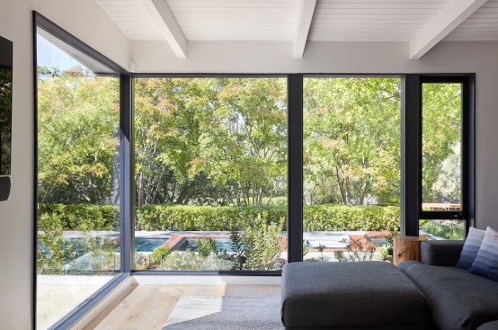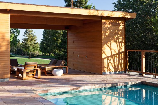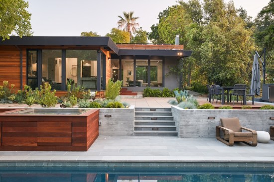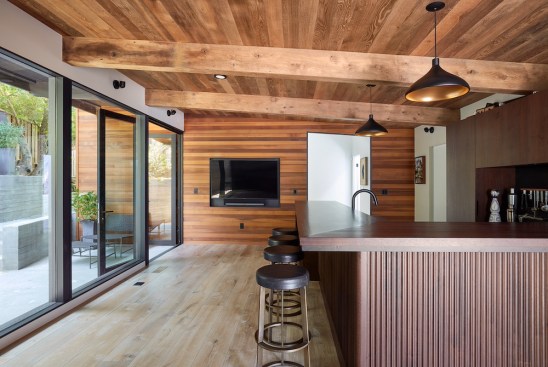 A family of passionate athletes and sports aficionados embarked on a remarkable endeavor alongside our team and Studio M Merge. Their vision? To breathe new life into their outdated mid-century modern home and neglected pool, resulting in the dramatic “Sports Enthusiasts’ Hideaway.” The transformative journey focused on opening the interior spaces out toward the beautiful gardens and amenities. The renewed house features expanded open-plan living areas, a new bedroom, and a reimagined primary bath. An attached ADU added a sports bar and a flexible office space that can double as a private guest bedroom. The outdoor spaces were brought to life with the addition of expansive decks, inviting patios, a horseshoe pit, a basketball half-court, refreshing plunge pools, and a lush sports lawn. A pool house artfully frames the view from the pool to the neighboring golf course. This family of five finds themselves immersed in their expanded home and experiential outdoor hideaway. Every element has been thoughtfully designed to cater to their favorite activities, providing a peaceful haven where they can fully indulge their shared passion for sports.