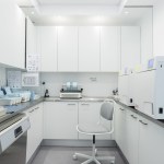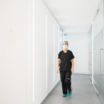 It was decided to have only two flooring solutions, in the clinical areas gray vinyl that characterizes the image of the Clinic in recent years and a white floor with marble in shades of gray in the remaining areas.