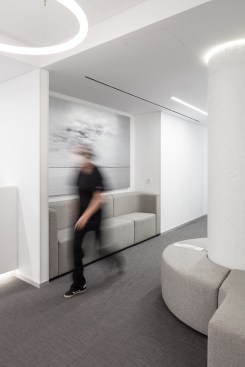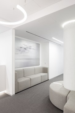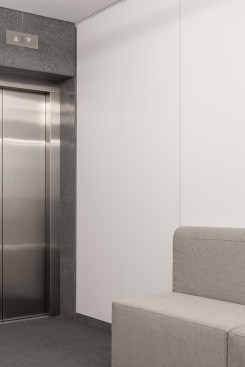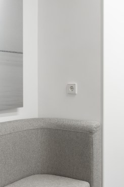 A visual balance was intended with regard to materials and colors, which is why white and gray mark the entire space.