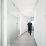 With regard to the materiality of the space, the concept included the placement of glass panels that allow natural light to pass through almost the entire area of these wings of the Clinic.