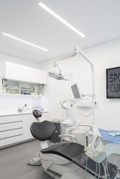 The clinic presents a set of dental specialties, separated by specific wings, in a total of ten offices.