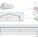 Early on, the design team recognized that the most economical – and most functional – solution would be a simple, symmetrical, gable-roofed building, and that, by necessity, it would be clearly a pre-engineered metal building in its detailing. Accepting this, the team focused on creating an axial façade facing the lawn, known as Garnet Way, that would be overtly monumental yet compatible with the pre-engineered building. The solution was found through a combination of exploiting the thin, lightweight nature of the pre-engineered building components, setting them in contrast to a comparatively massive masonry façade, celebrating the scale of the structure, inspired by historic gymnasiums.