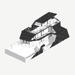 On this small, 400 square meter area we decided to go with a simple and straightforward configuration: the first floor is allocated to the daytime spaces and a garage, the second floor is dedicated to the bedrooms, and the third floor is allotted to a terrace and a small studio. The cozy and cloistered yard surrounds and easily unravels in front of the first floor.