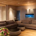 Through the floated staircase there is another, more intimate, family room and a master bedroom with a more than spacious bathroom and dressing room. Particularly in this area we can notice a detailed design that includes all the bathroom accessories exclusively made for the house, and the exact illumination for making this space cozy, relaxing and inviting. The terrace that borders the floor plays with the patios to incorporate the nature to these rooms.