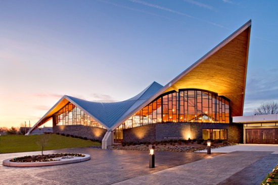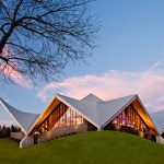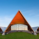 The new Church of Saint Aloysius tells the story of its purpose through its architectural expression. Two significant conceptual explorations gave form to the design for this church: “re-pitching the tent”, expressed in the delicate soaring roof lines evoking the concept of simple worship and the Four Devotions of Saint Aloysius: Blessed Sacrament, Passion of Our Lord, Love of Our Lady, and Choir of Angels, which sit within the church adjacent to the large concrete buttresses anchoring the roof.