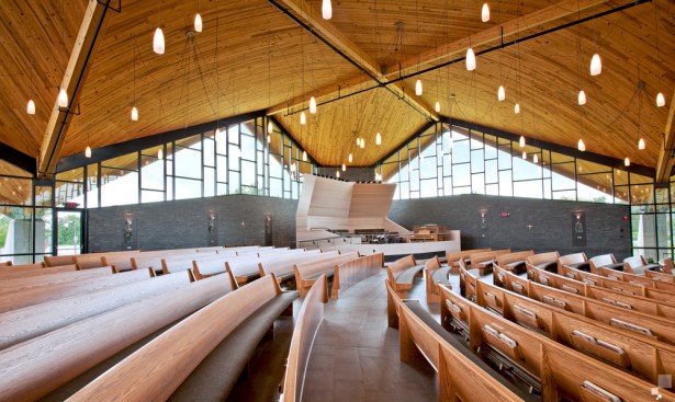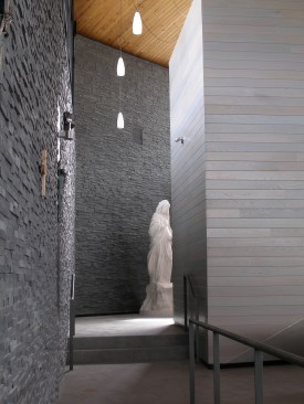 Careful consideration was given to the sacraments and their adjacencies. Also considered was the orientation of the altar and the daily chapel to the baptismal font at the entry to the Sanctuary. The floating roof structure is metaphorically grounded by the four devotions whose locations provide the foundation to both the building and to this faithful congregation.