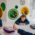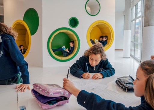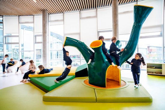 In kindergarten and early years, the students are grouped around the open beach-inspired areas of the Lowlands. The environment offers a flexible and comfortable learning space with padded surfaces, ideal for romping and movement. Each beach has a distinctive coral sculpture to give the space identity and promote a playful learning atmosphere.