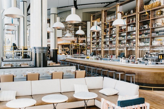 St. Cecilia is a sprawling 10,700 square foot European-style bistro in Atlanta. The restaurant is famed local chef-restaurateur Ford Fry’s second restaurant in the chic and affluent neighborhood of Buckhead, and his fifth restaurant in Atlanta. The design inspiration for St. Cecilia was drawn from a classic, coastal Italian aesthetic. Meyer Davis infused an upscale European tone into the design, while outfitting the space with hints of antiquity and quirk. The result is a classic and modern restaurant with rustic twists that invites intimate moment within a grand collage of distinct and fresh design elements that lend themselves to the attitude of seaside comfort. A color palette of creams, natural hues and soft light blues contrasted with deeper, marine blues also lends calm and comfort to the space and offers the setting a relaxed vibe. Splashes of character feature throughout and can be found in details like the domed pendant lighting, modern furniture, and décor – all inspired by coastal Italy.