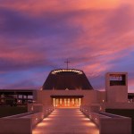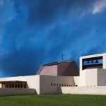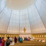 Directly adjacent to the main sanctuary is the 40-seat day chapel, expressed on the exterior below the bell tower as a smaller octagonal form. Other rooms, including work and vesting sacristies, a reconciliation room, and a conference room, are distributed in plan between the two sanctuaries. A meditation garden surrounds the day chapel outside the building.