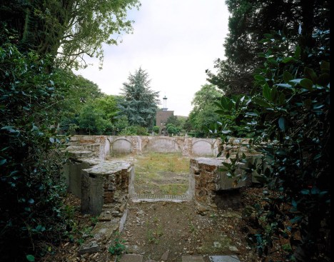 Located centrally in the St. Laurentius cemetery in Rotterdam, the Roman Catholic chapel sits within the perimeter of a historic chapel from 1869 whose outline is visible from the exposed ruins of the original wall.