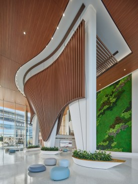The new St. Mary’s Medical Center, designed by EwingCole, represents a monumental investment in the region. The lake-side hospital redefines what patients have come to expect from their healthcare providers with bold, innovative, and sustainable solutions. It consolidates Essentia Health’s facilities, challenges contemporary healthcare design strategies, and improves efficiency throughout Essentia’s healthcare delivery model. Essentia Health and the design team envisioned a hospital environment that is comfortable, welcoming, and efficient for patients, visitors, and staff. Public areas have the engaging warmth of hospitality spaces, with natural materials and themes of healing and nature. Its patient-centric design drives impactful patient outcomes by consolidating adaptable inpatient rooms, procedure rooms, OR platforms, and flexibly planned outpatient spaces.